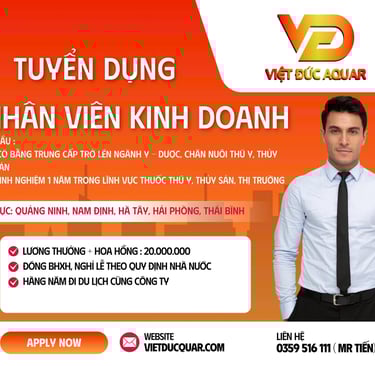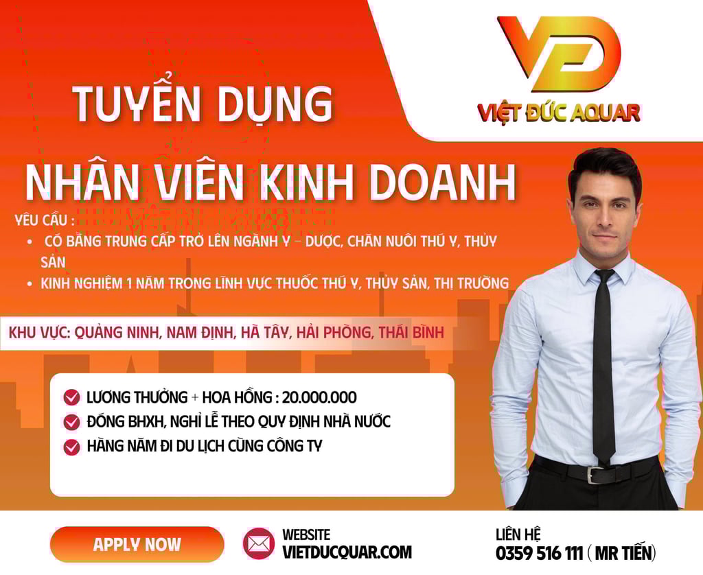 Nhằm mở rộng thị trường và phát triển hệ thống kinh doanh, Việt Đức Aquar cần tuyển dụng vị trí Nhân viên Kinh doanh làm việc tại các khu vực trọng điểm.